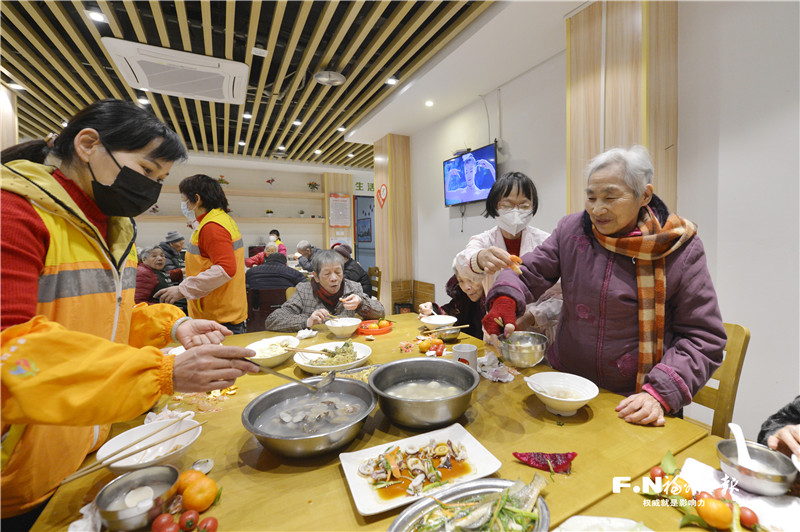 贴心的养老服务不断满足社区居家老年人多层次、多样化的养老服务需求。21日晚,在鼓楼区安泰街道社区智慧养老服务照料中心,在院的19名老人和全体工作人员同吃团圆饭,欢歌笑语迎接新年。