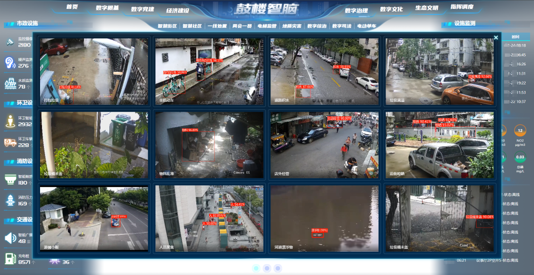 汇聚2000余个公共视频,将占道经营、两车禁停等信息及时推送至相关部门,确保快速响应与处理;打造“鼓楼社区幸福通”公众号,为群众提供指尖上的办事服务;在城市重点部位布设空气、水质、声环境等物联感知设备,实现生态环境全要素实时动态监管……