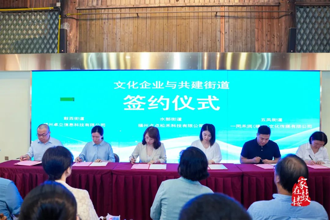 鼓西街道、水部街道、五凤街道分别与福州卓立信息科技有限公司、福州点点松禾科技有限公司、一同禾润(福州)文化传媒有限公司签订战略合作协议,共同激活基层文化产业创新联动效能。
