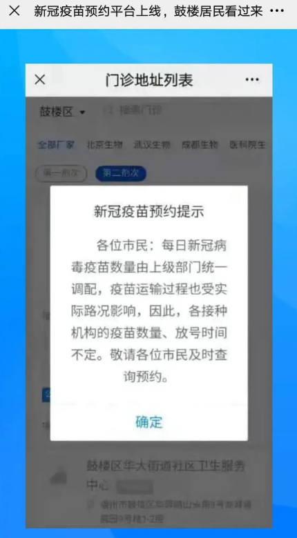 鼓楼区7月19日-7月25日新冠疫苗接种点安排公布!附各单位线上放号时间