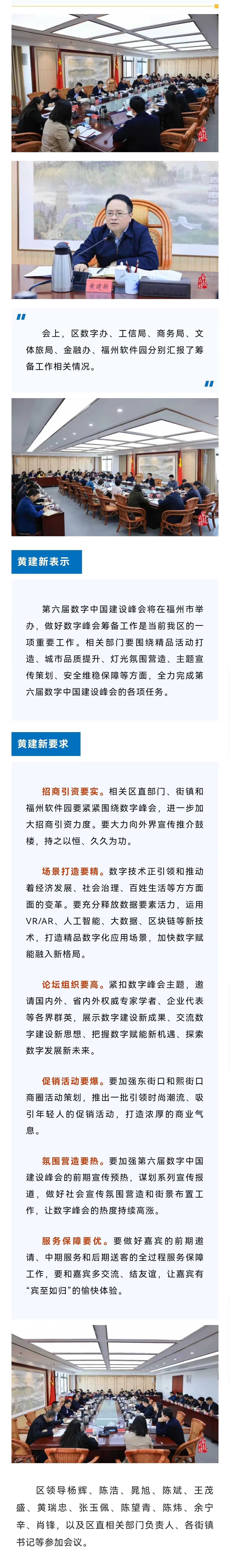 3月13日上午,鼓楼区召开第六届数字中国建设峰会筹备工作会议。区委书记黄建新出席会议并讲话。