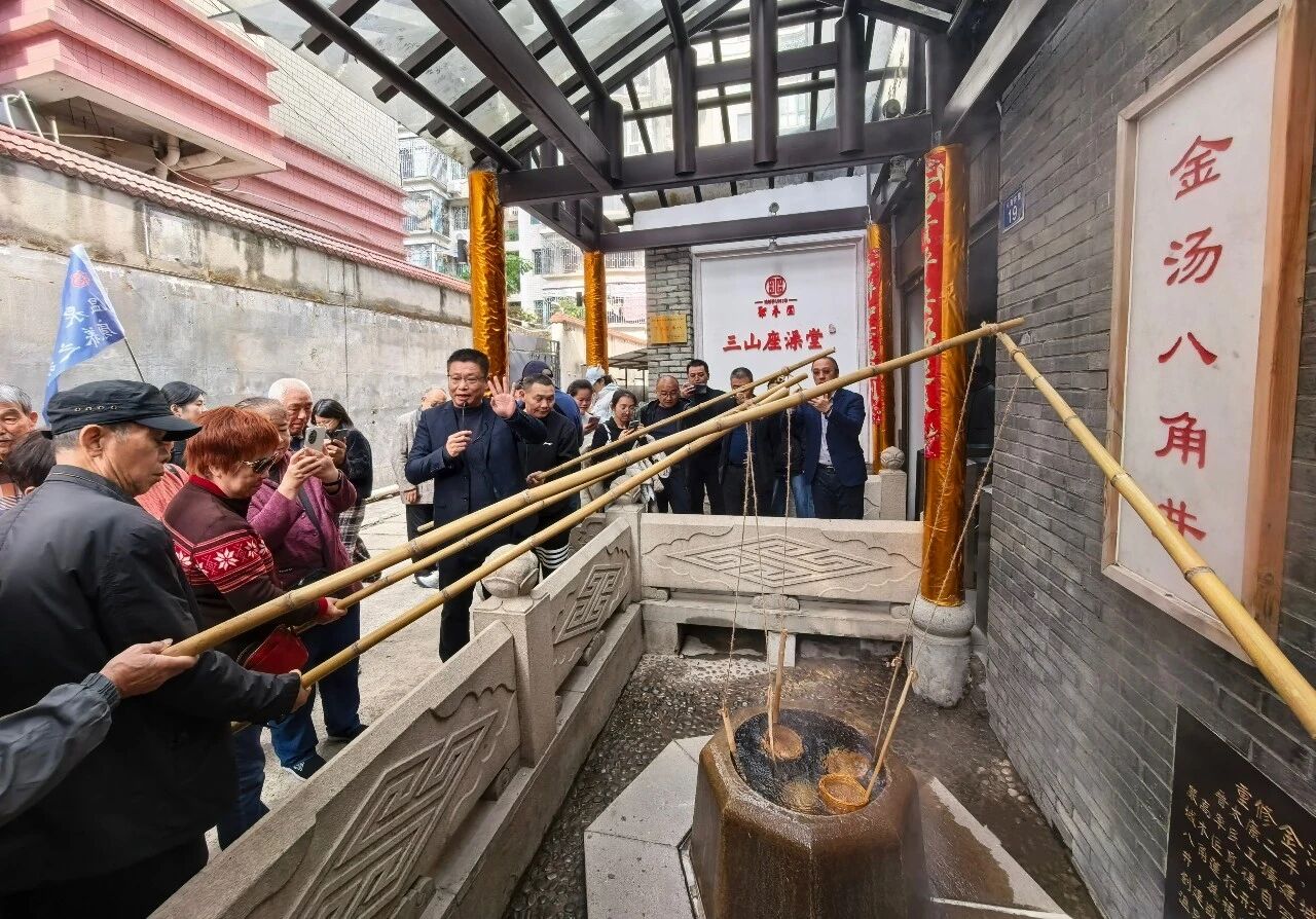 本次活动特邀福州温泉专家韩鸣全程讲解。韩鸣以其深厚的专业知识,带领游客深入解读了每一处温泉景点背后的故事。游客们在福州市内免税店感受购物与文化的交融,在福龙泉澡堂和金汤八角井体验传统都市温泉的独特魅力,在温泉公园的绿意中漫步,并在温泉博物馆了解福州温泉的历史演变。通过翔实生动的解说,游客们深入了解了福州温泉的千年历史、开发沿革及养生文化,完成了一次深度的文化“阅读”。