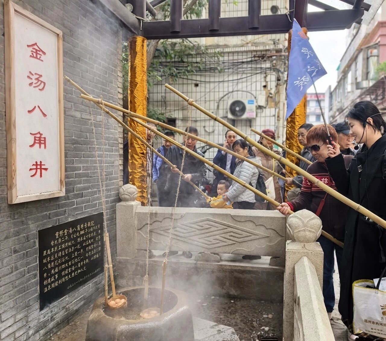 3.趣味互动,体验温泉的别样魅力在参观金汤八角井时,活动设置了独特的互动环节——利用温泉水现场煮制鸡蛋。游客们不仅亲眼见证了温泉的热力,还免费品尝了温泉蛋,以趣味方式亲身感知了温泉的特性,增添了旅途的乐趣与记忆点。