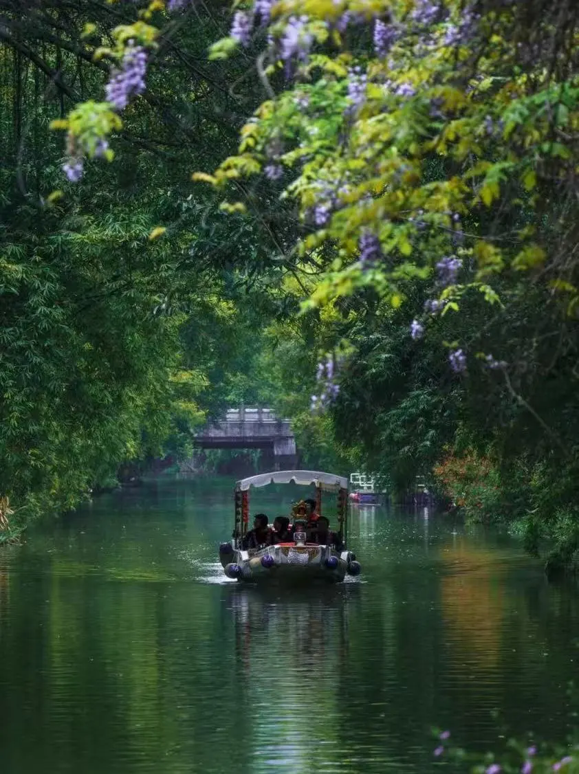 游船在一座又一座小桥下穿行,与家人或三五好友相约在船上,忽明忽暗之际,鸟语花香微风轻拂,城市间的自然意趣与人文风情似幻灯片似的在眼前出现。
