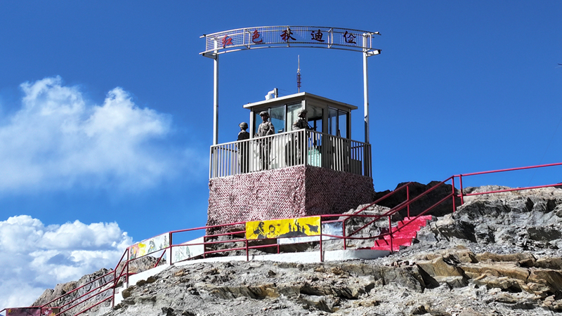 西藏阿里军分区普尔楚边防连秋迪俭革拉哨所官兵在海拔5100米的高原执勤站哨(2024年6月29日摄)。新华社发(戴学武 摄)
