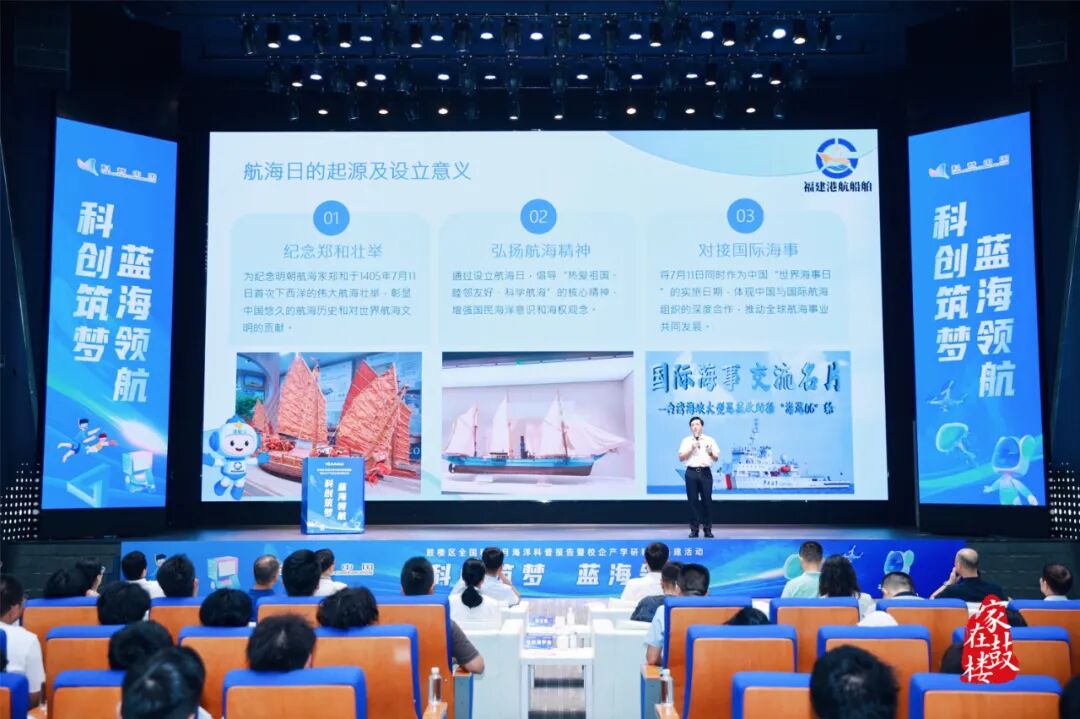中国航海科普大使林超明作《中国航海科普发展》主题演讲,将我国航海事业的发展历程娓娓道来;福建理工大学的王芳副教授现场分享《深海探秘·南极寻踪》,让现场嘉宾仿佛置身南极秘境,进行科学探索;福建船政交通职业学院的朱庆斌老师介绍的《海洋环境生态修复技术科普》,更让大家充分认识到了海洋环境保护和可持续发展的重要性。