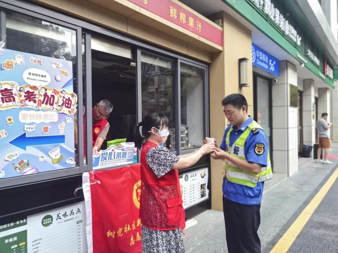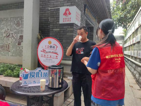 庆城社区爱心茶摊位于化民后巷2号庆城社区新时代文明实践站。自开放以来便坚守公益初心,成为辖区居民及过往群众的“暖心港湾”。茶摊不仅常备免费茶饮,更贴心设置充电、临时休息区域,并配备应急药品箱,全方位满足群众的多样化需求。此外,茶摊还积极开展“爱心助考”等特色志愿服务活动,将清凉与关怀温暖传递给环卫工人、快递小哥、考生家长等群体。用一杯杯热茶、一次次贴心服务,让社区温度可感可及。