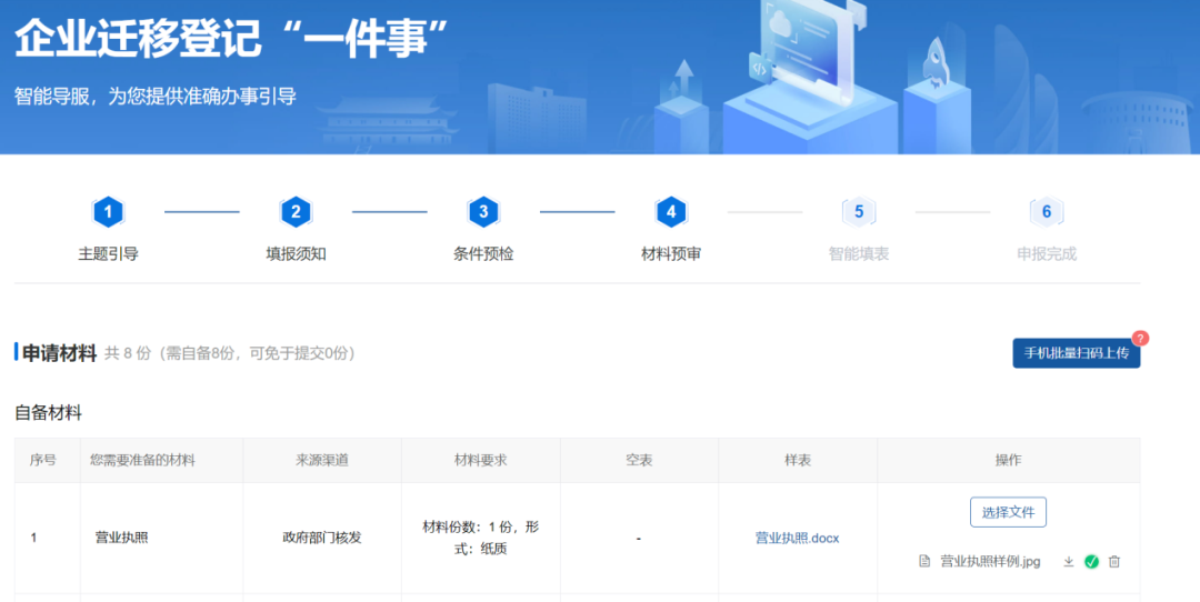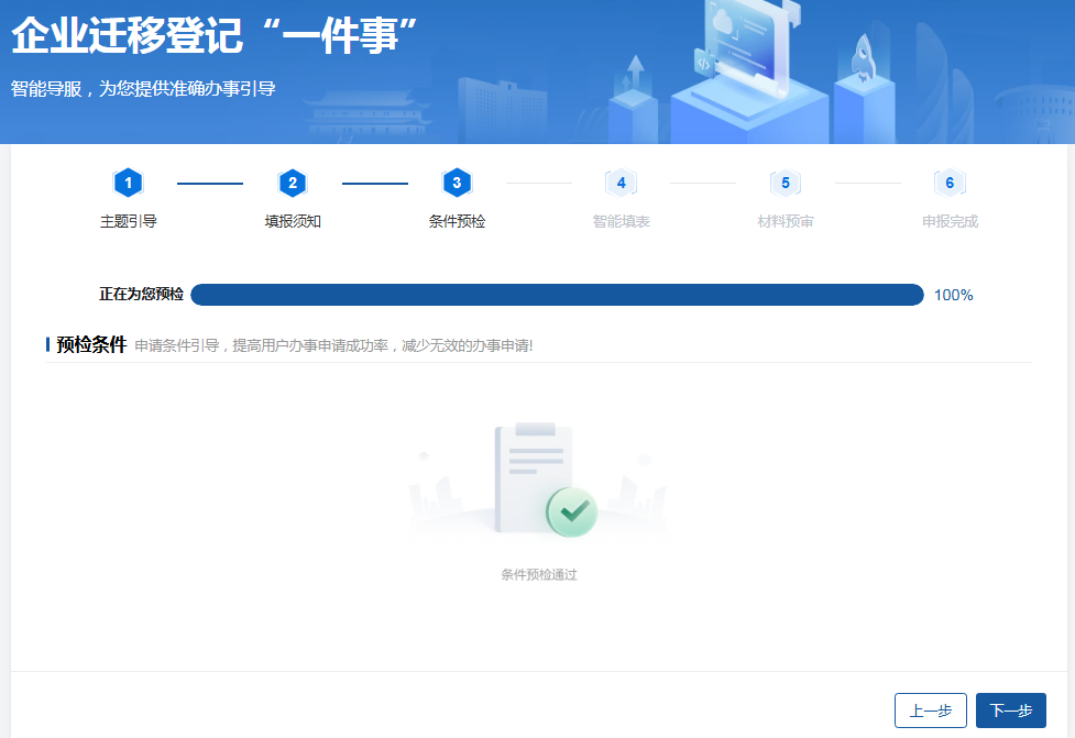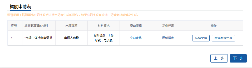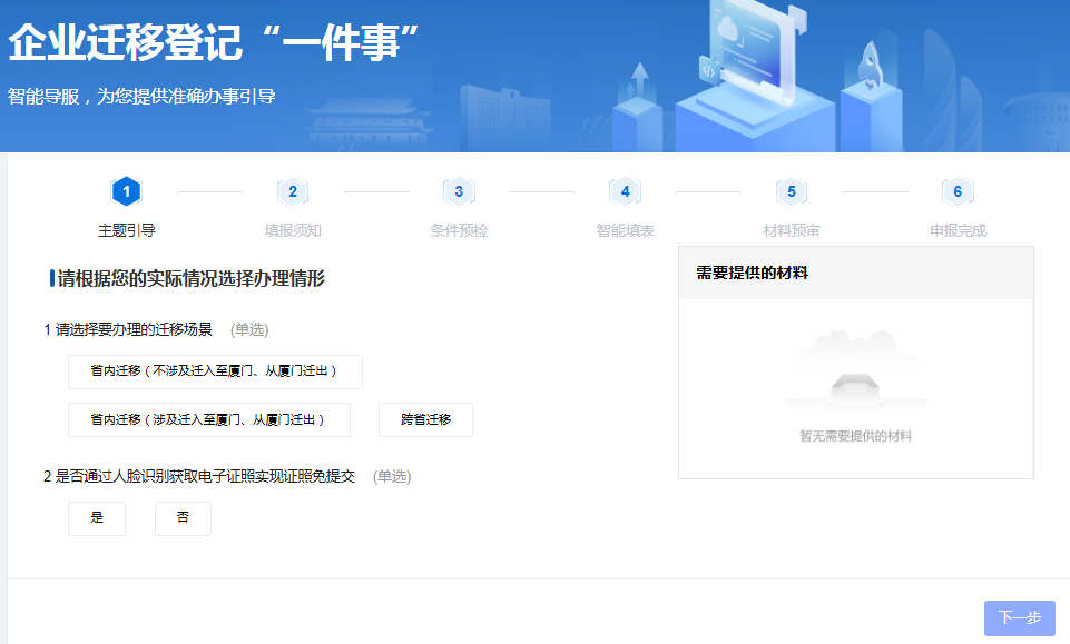 2.使用法人账号登录,选择办理情形,生成专属材料清单,点击“下一步”。