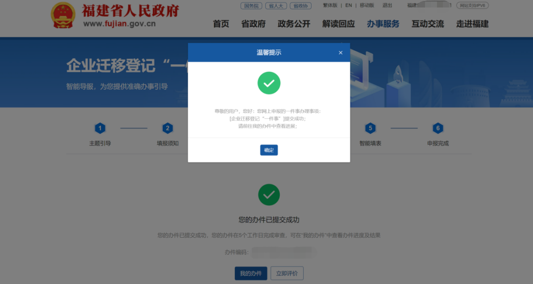 企业迁移登记“一件事”将福建省区域内办理企业准迁申请、企业迁出调档、企业迁入申请、企业变更登记、企业税务迁出申请、迁入地住房公积金单位缴存登记、迁出地住房公积金个人账户封存、迁出地社会保险单位基本信息变更、迁入地企业社会保险登记等14个“单事项”集合成为“高效办成一件事”套餐。线上通过省网上办事大厅、闽政通APP实现“一次告知”、“一表申报”、“一次提交”、“一次办结”,同时基于全国个人和法人数据共享,实现业务“跨域办理”。线下通过市县级政务服务中心“高效办成一件事”窗口,实行“一窗受理”、“一站办结”。