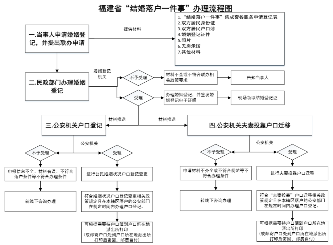 窗口办理:福州市鼓楼区嘉信大厦三楼婚姻登记服务中心结婚落户一件事窗口