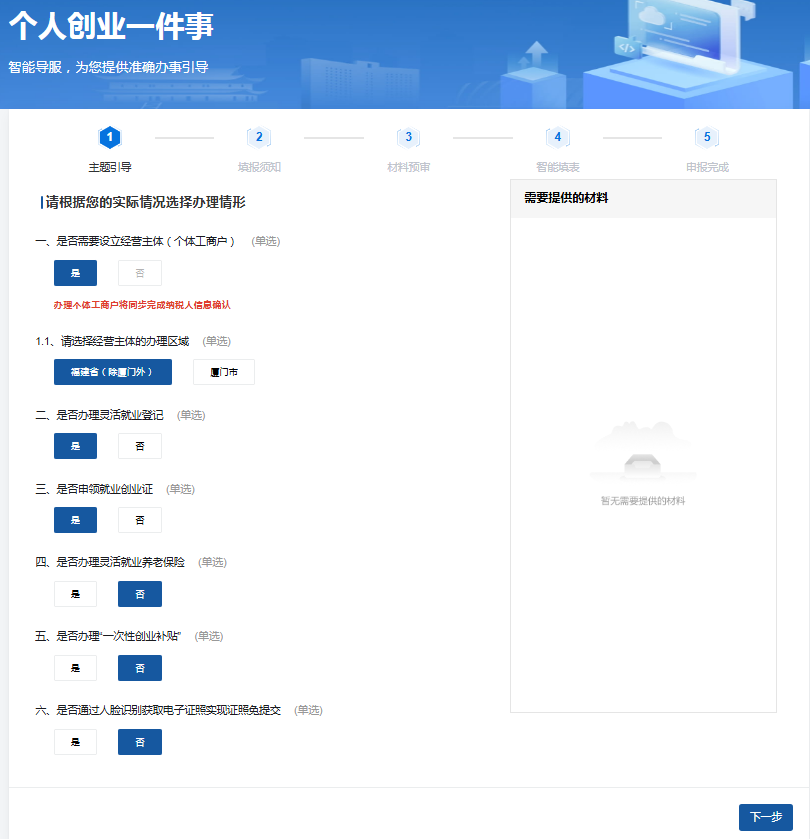 2.点击确认进入“主题引导”页面。根据自身实际情况,选择对应选项。