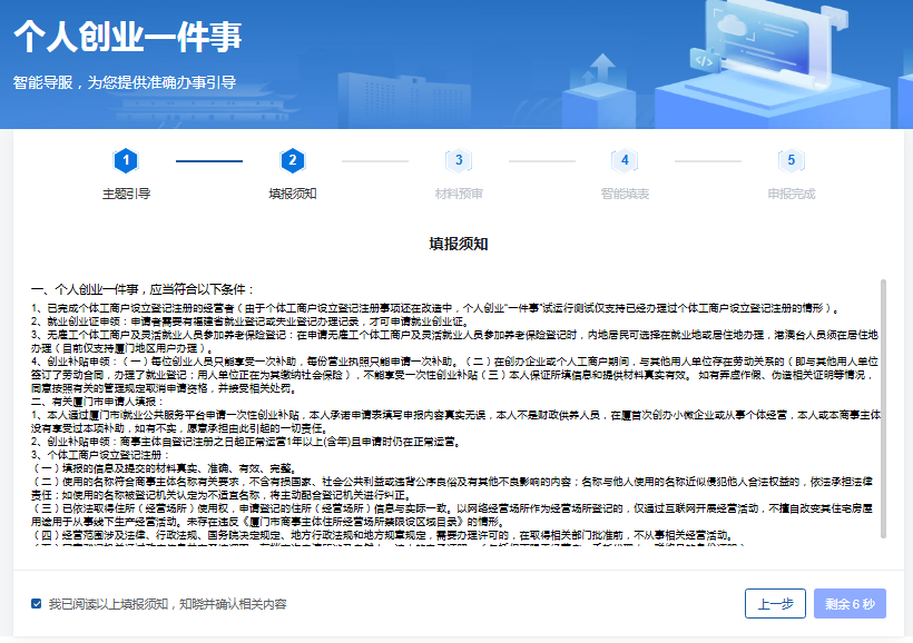 3.点击“下一步”进入“填报须知”页面。请仔细阅读,了解申报条件及注意事项,勾选左下角按钮,点击“下一步”。