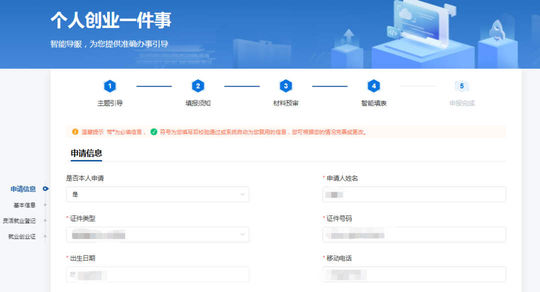 5.点击“下一步”,进入“智能填表”页面。完成后点击“提交”。