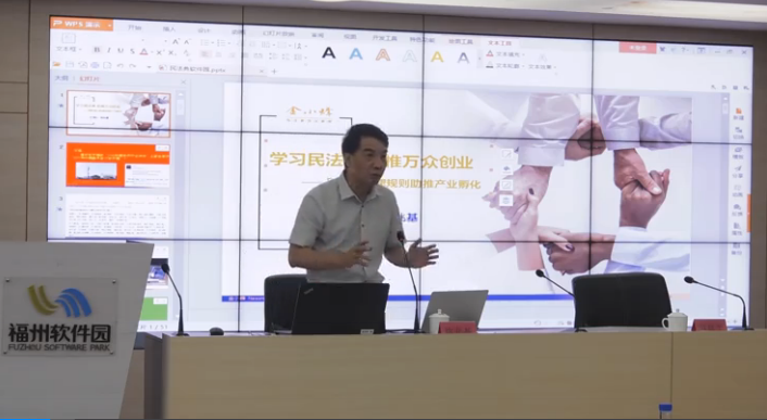 在本次党课上,徐兆基教授从“与时俱进看民法典”“民法原则和民事主体”“灵活运用股权创业的福州案例”三个方面展开,为我们了解颁布实施民法典的重大意义,掌握民法概要、基本原则和民事主体,运用民法典助推产业孵化、指导园区企业创业进行了详细解读,对园区企业熟练掌握市场经济规则、提高竞争力具有很强的现实指导意义,令大家收益颇丰。