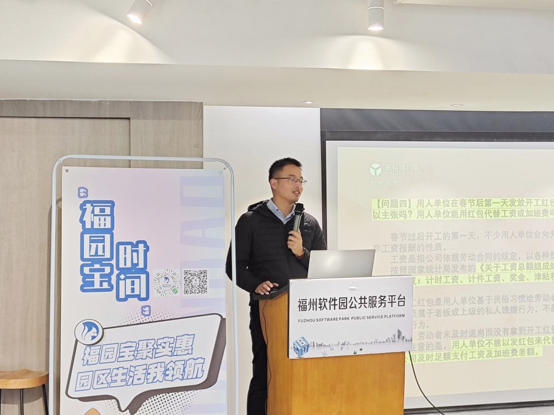 本次活动邀请到了北京市盈科(福州)律师事务所林璧律师作为主讲嘉宾,林律师针对春节假后返岗常见的“劳动用工”问题进行介绍,并紧扣相应指导性案例为在场的企业代表们深入剖析解答。