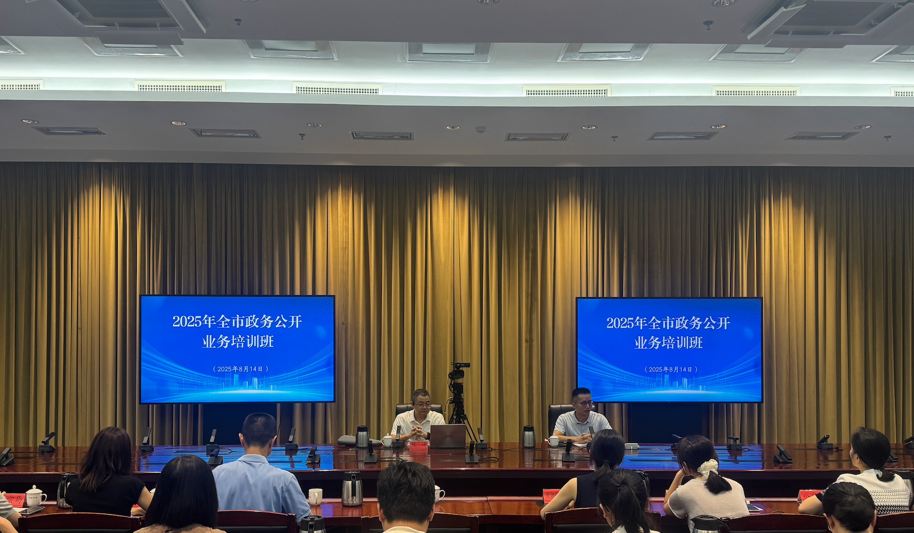 8月14日上午,市政府办公厅举办2025年全市政务公开业务培训班。省政府办公厅政务公开处二级调研员陈靖受邀作授课辅导,围绕我市2024年政务公开第三方评估提升改进工作要点和主动公开事项目录编制发布等工作进行讲解。市直有关单位参加培训,各县(市)区政府和高新区管委会同时设置分会场。