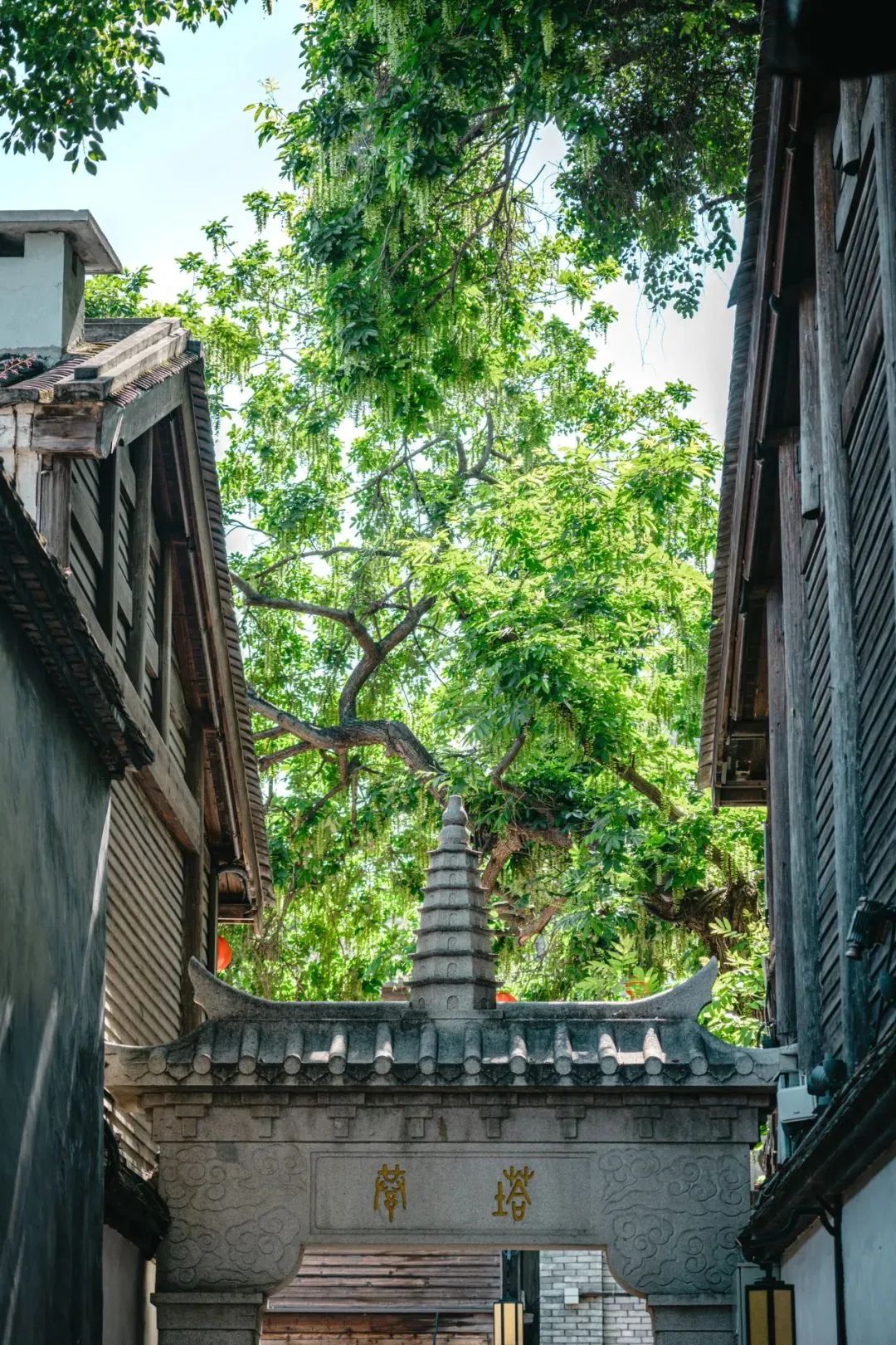 巷口那座标志性的塔巷牌坊与小育王塔雕塑,静静诉说着千年的文脉流转。