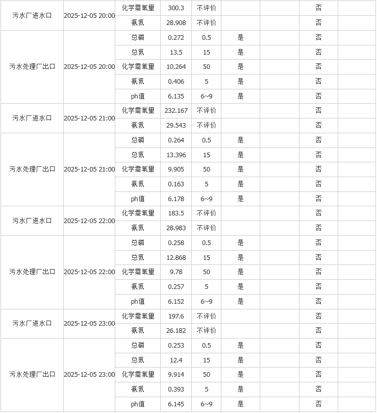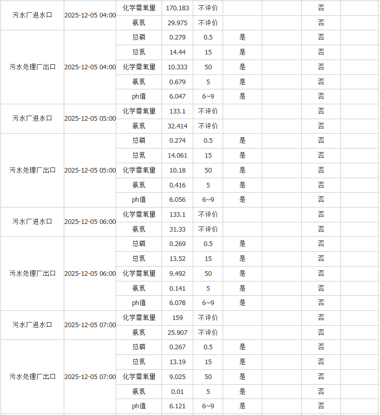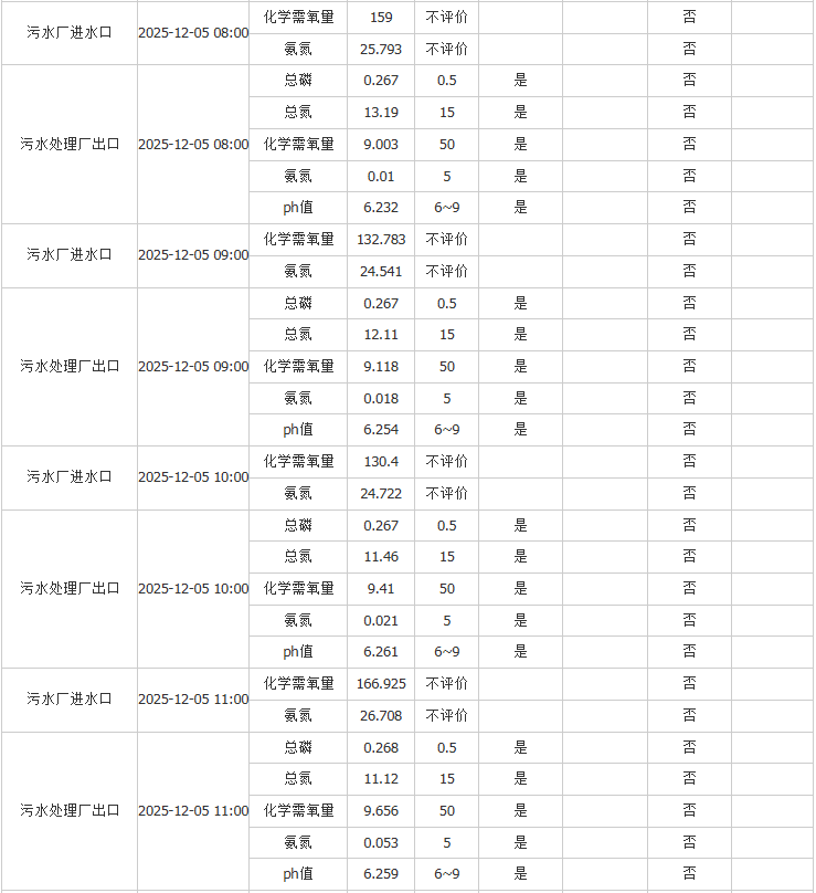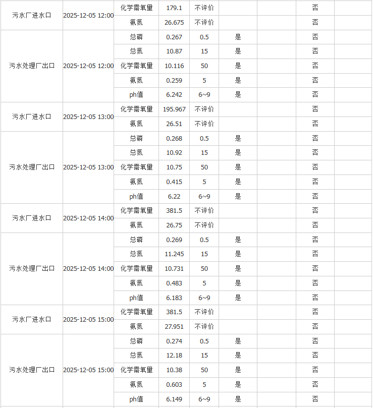 祥坂污水处理厂水质数据2025.12.5