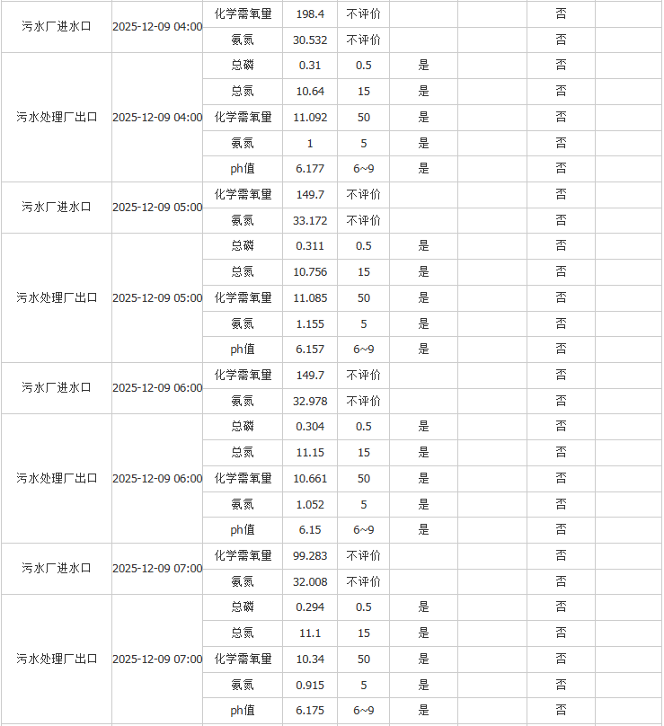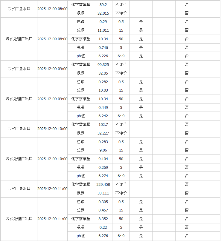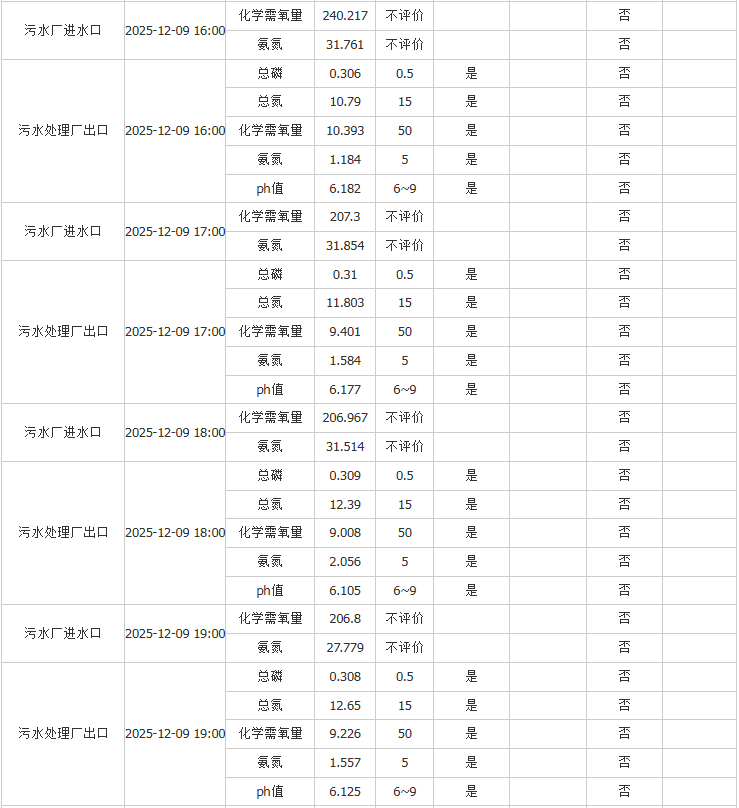 祥坂污水处理厂水质数据2025.12.9