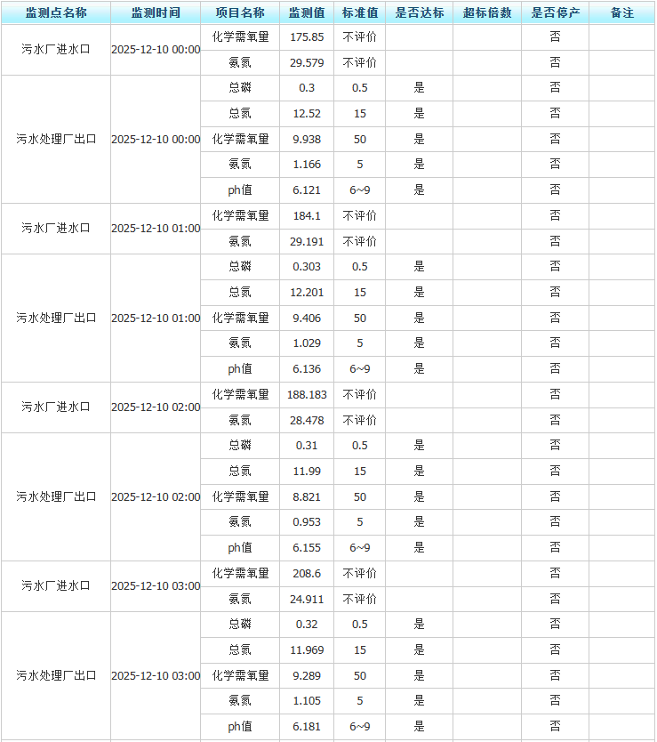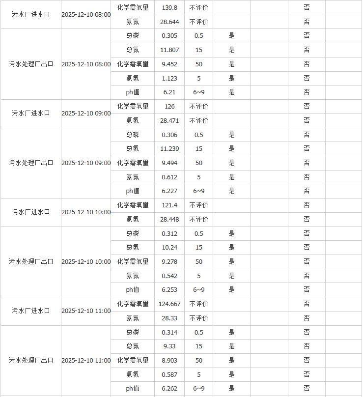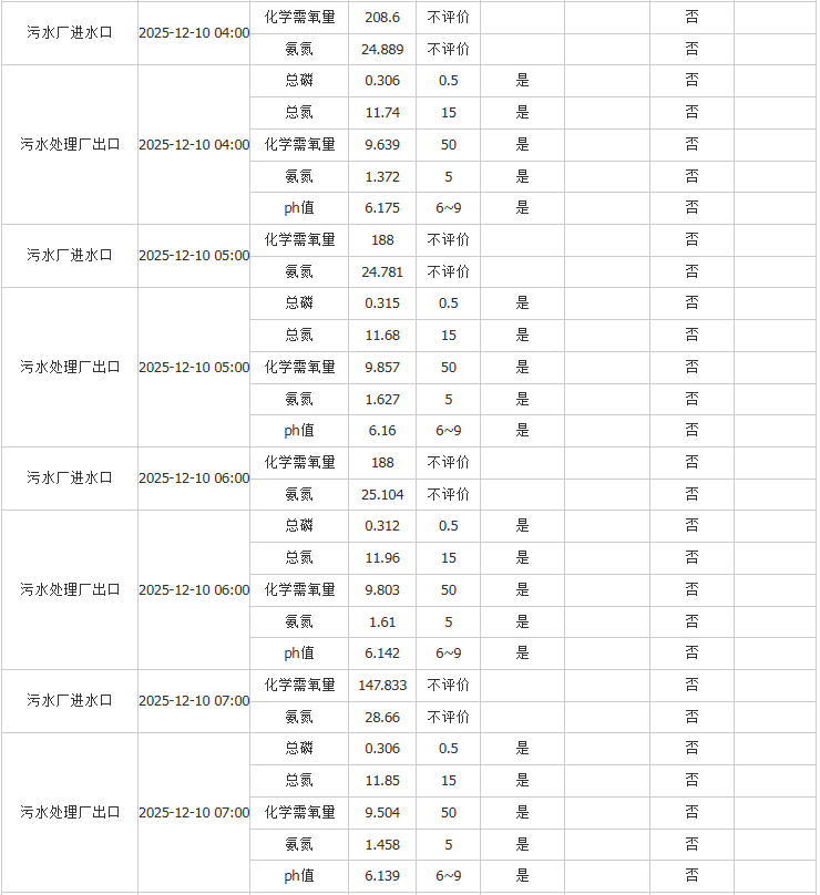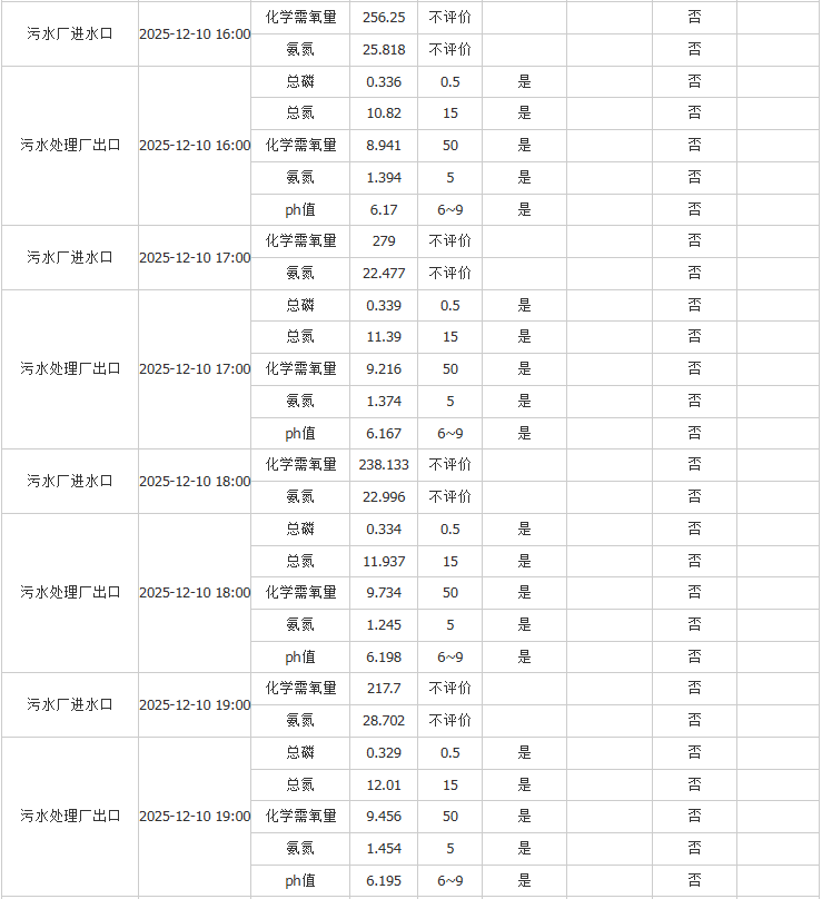 祥坂污水处理厂水质数据2025.12.10