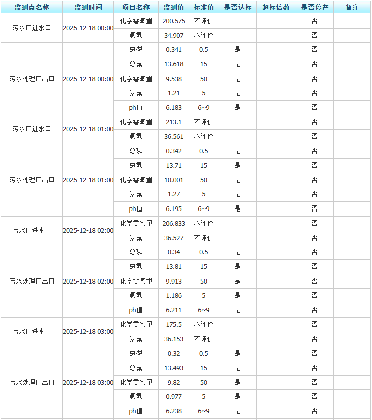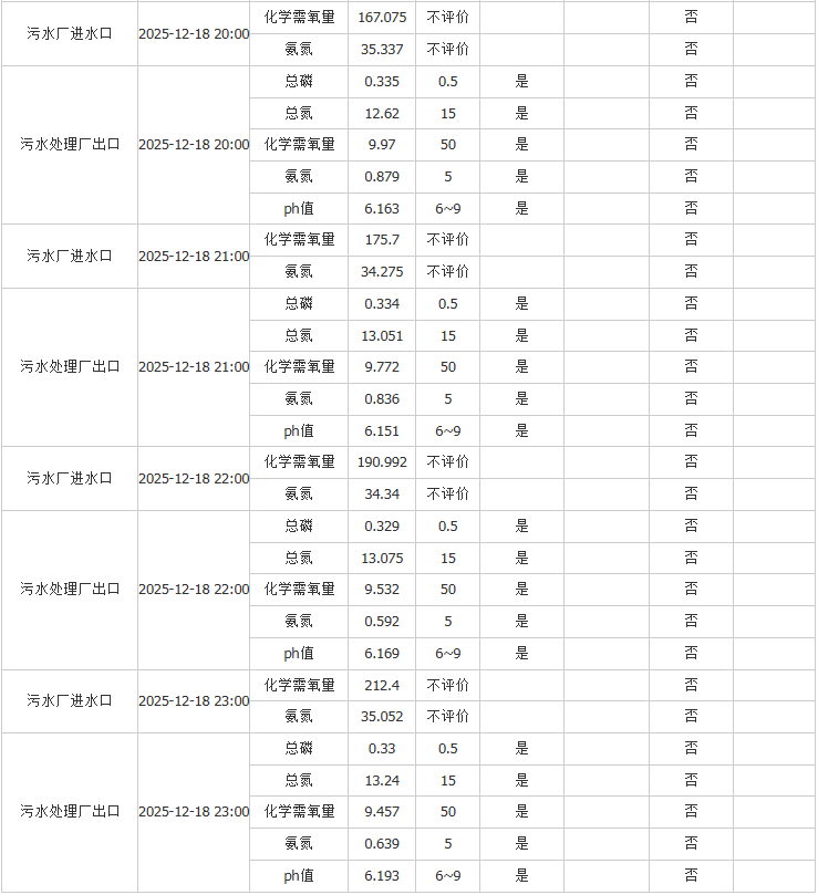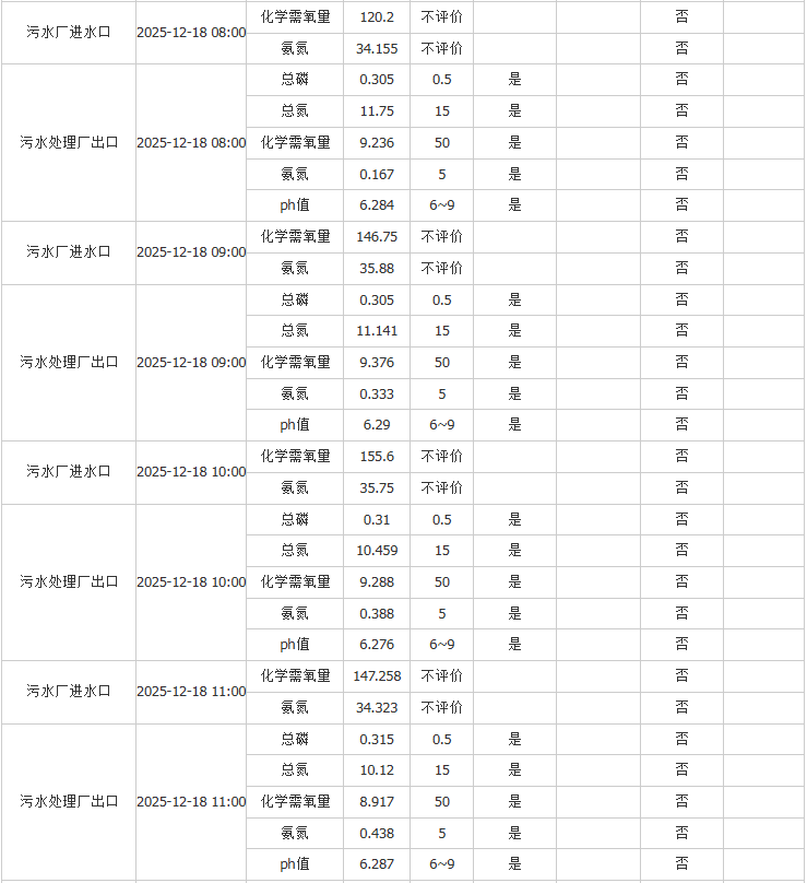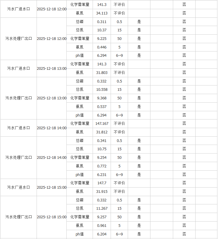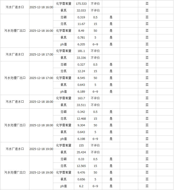 祥坂污水处理厂水质数据2025.12.18