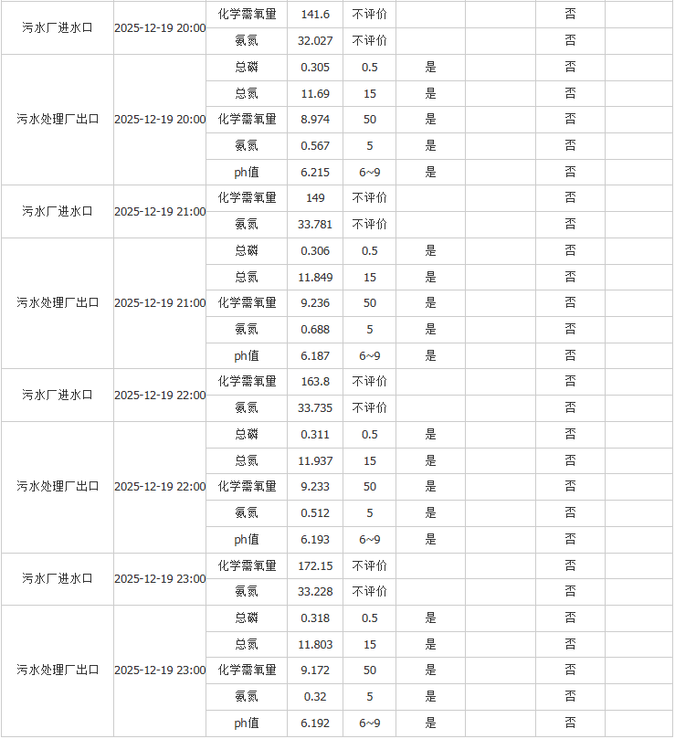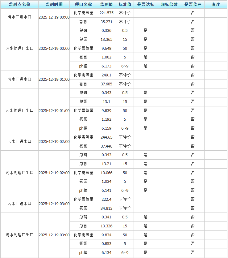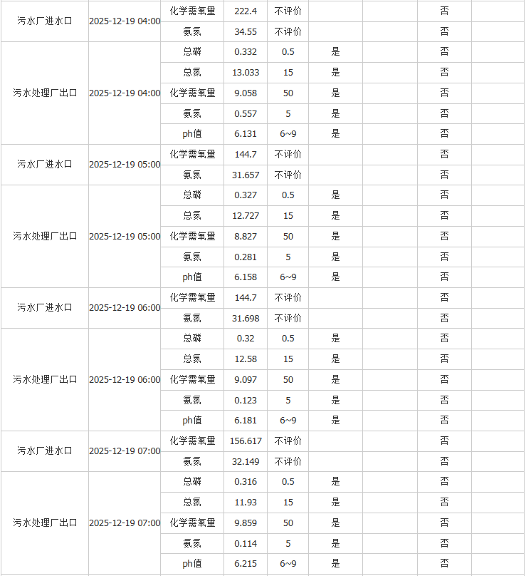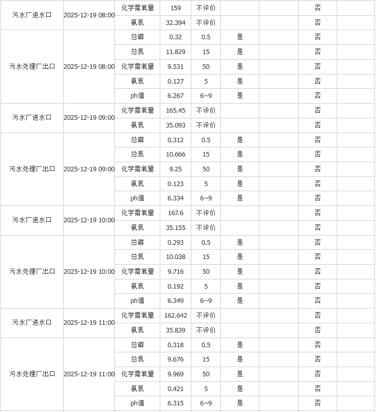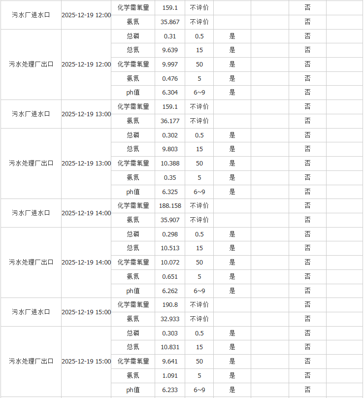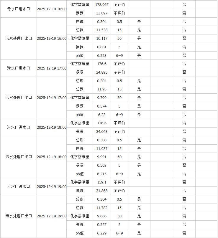 祥坂污水处理厂水质数据2025.12.19