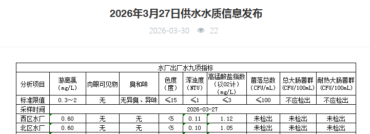 祥坂污水处理厂水质数据2026.3.27