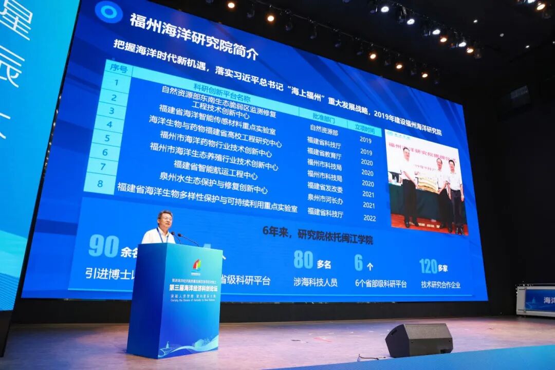 在海洋科技成果和海洋金融产品发布环节,福州海洋研究院院长陈建明发布海洋科技成果,提出加大涉海产品和技术研发力量,促进科研成果与产业需求深度对接,加速科技成果落地转化。