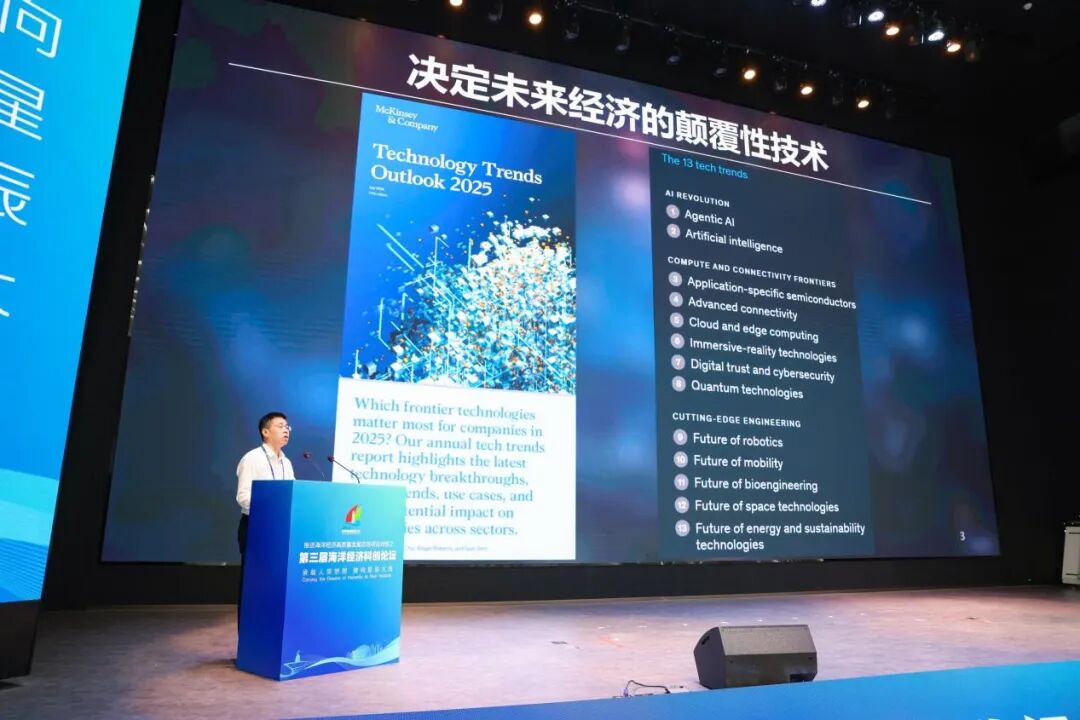 在“国际海洋前沿与智能技术突破”主旨演讲中,林间院士围绕国际海洋前沿、智能海洋技术、创新人才培养三大主题展开,他提出基于智能无人机、无人船、无人潜航器等装备的核心产品研发,我国在深海探索已获重大突破,望通过科教布局与科产融合,助力海洋新质生产力发展。