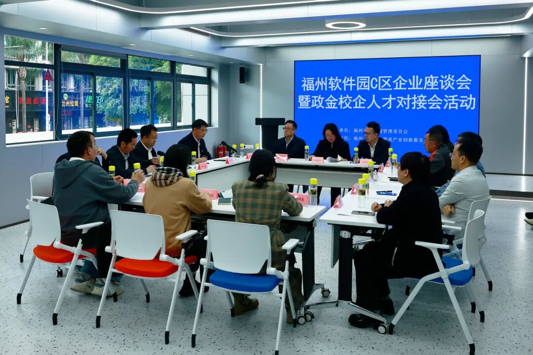 为精准服务园区企业发展需求,深化政、金、校、企四方联动,助力园区“十五五”高质量发展,4月8日上午,福州软件园管委会任巍主任主持召开福州软件园C区企业座谈会暨政金校企人才对接会。会议邀请到福建农业职业技术学院、福建信息职业技术学院2所高校、鼓楼区人社局、兴业银行、建设银行、中国银行3家金融机构以及鑫诺通讯、安博榕、春华投资、北科大舟宇等10家C区重点企业,共商发展、共话未来。