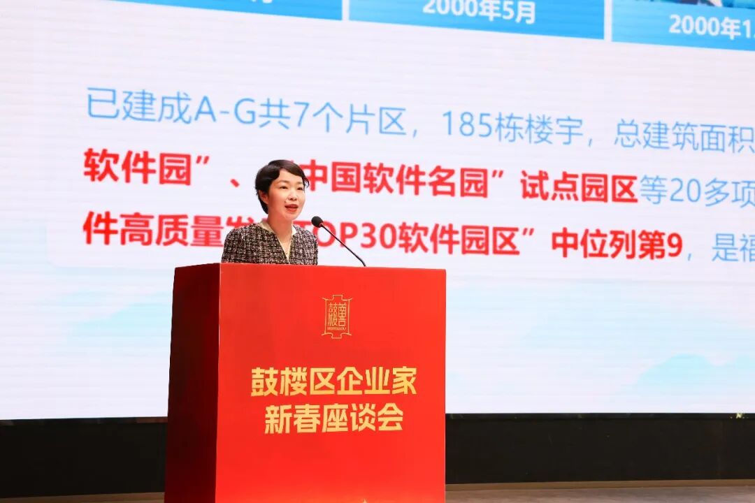 福州软件园管委会副主任章欢芳作软件园招商推介。推介紧扣企业家最关心的核心诉求,系统梳理了软件园的“六优”核心优势,生动诠释了“六新”发展动能,并清晰锚定了“三目标”发展愿景,全方位呈现了软件园的投资价值与发展潜力,激发与会企业家们的投资兴趣与合作意愿。