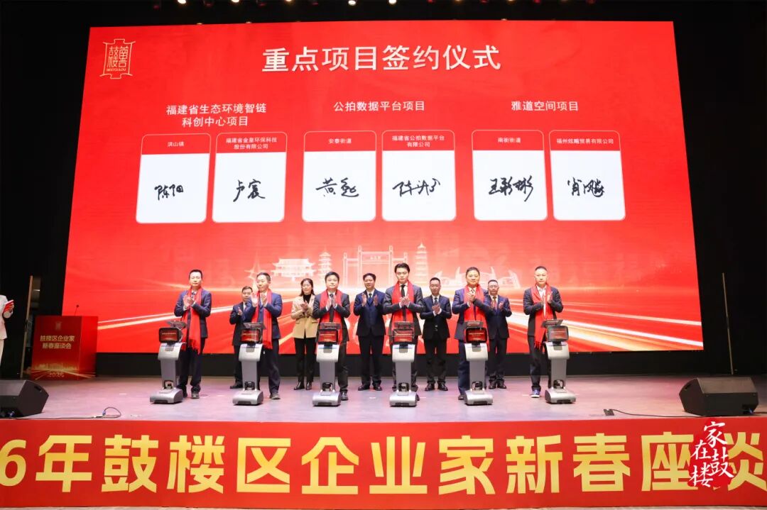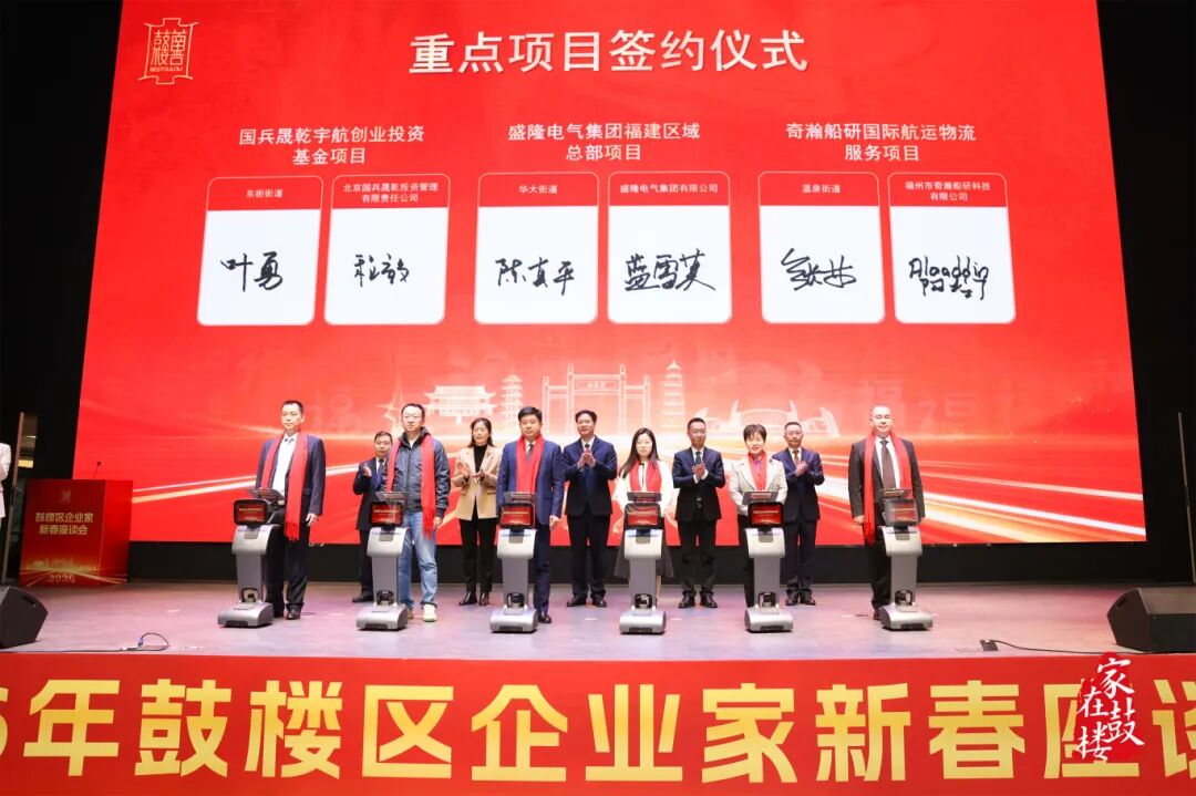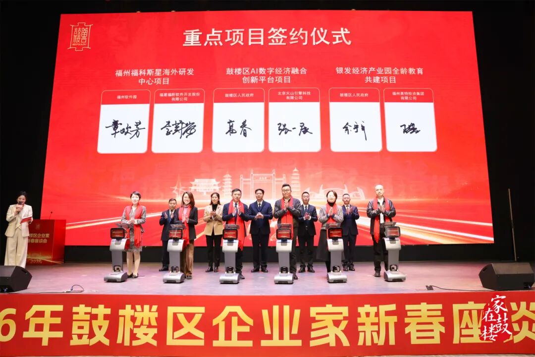2月26日下午,“2026年鼓楼区企业家新春座谈会暨一季度重点项目签约仪式”在海洋科创赛事中心隆重举办。活动邀请了辖区重点民营企业、新质生产力企业、人工智能企业相关代表以及招商大使等百余位嘉宾欢聚一堂,共叙深厚情谊,共话时代机遇。