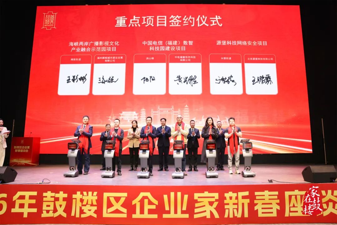 活动现场,鼓楼区AI数字经济融合创新平台项目、银发经济产业园全龄教育共建项目、福州福科斯星海外研发中心项目等15个高质量产业项目集中签约,签约项目涵盖人工智能、智慧城市、金融服务、网络安全、国际航运等重点领域,充分体现了鼓楼区招商引资的精准发力和产业结构优化升级的鲜明导向。重大项目是高质量发展的“硬支撑”,鼓楼区将以此为牵引,统筹抓好项目攻坚与生态构建,推动产业链、创新链、价值链向高端迈进。