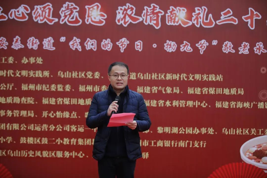 为弘扬闽都福文化,传承中华敬老情,2月17日上午,在传统节日拗九节来临之际,由鼓楼区安泰街道党工委、办事处主办,街道新时代文明实践所、乌山社区新时代文明实践站承办的“银发红心颂党恩 浓情献礼二十大”文艺演出在黎明湖公园大众茶馆成功举办,老同志们用激昂的歌声、优美的舞姿、抖擞的精神充分表达了对党的忠诚和对祖国繁荣昌盛的热情讴歌。鼓楼区政协副主席、财政局局长柳向阳出席并致辞,安泰街道党工委书记黄勉、安泰街道办事处主任于梦镌参加活动。