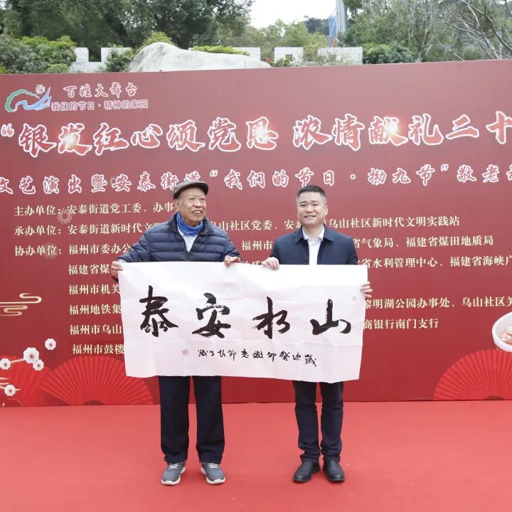 活动现场,福州市人大常委会原主任赵守箴及福州市人大常委会原副主任郭永灿亲笔题字并分别赠予安泰街道和乌山社区,对全体基层干部的辛苦付出表示了肯定与感谢。