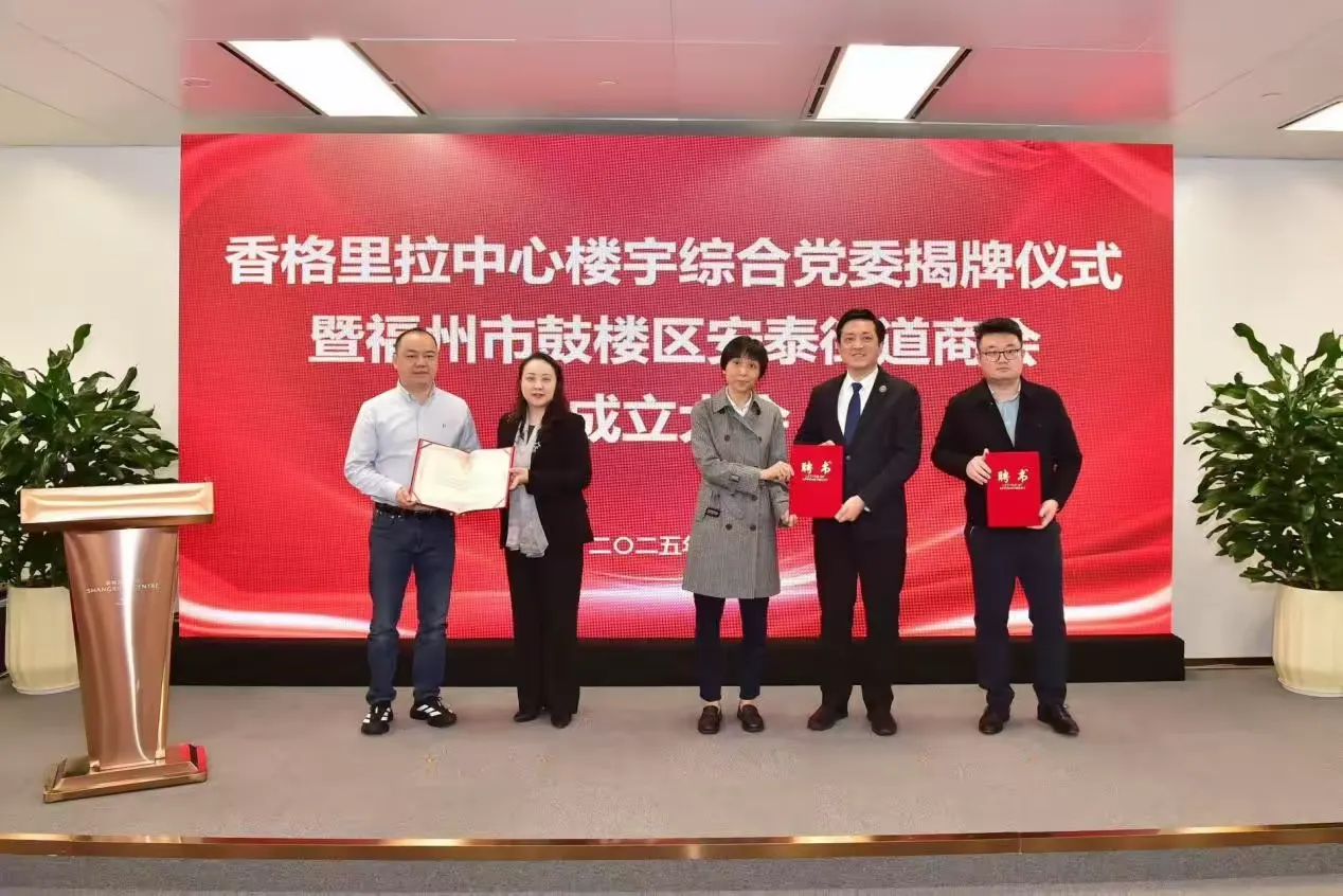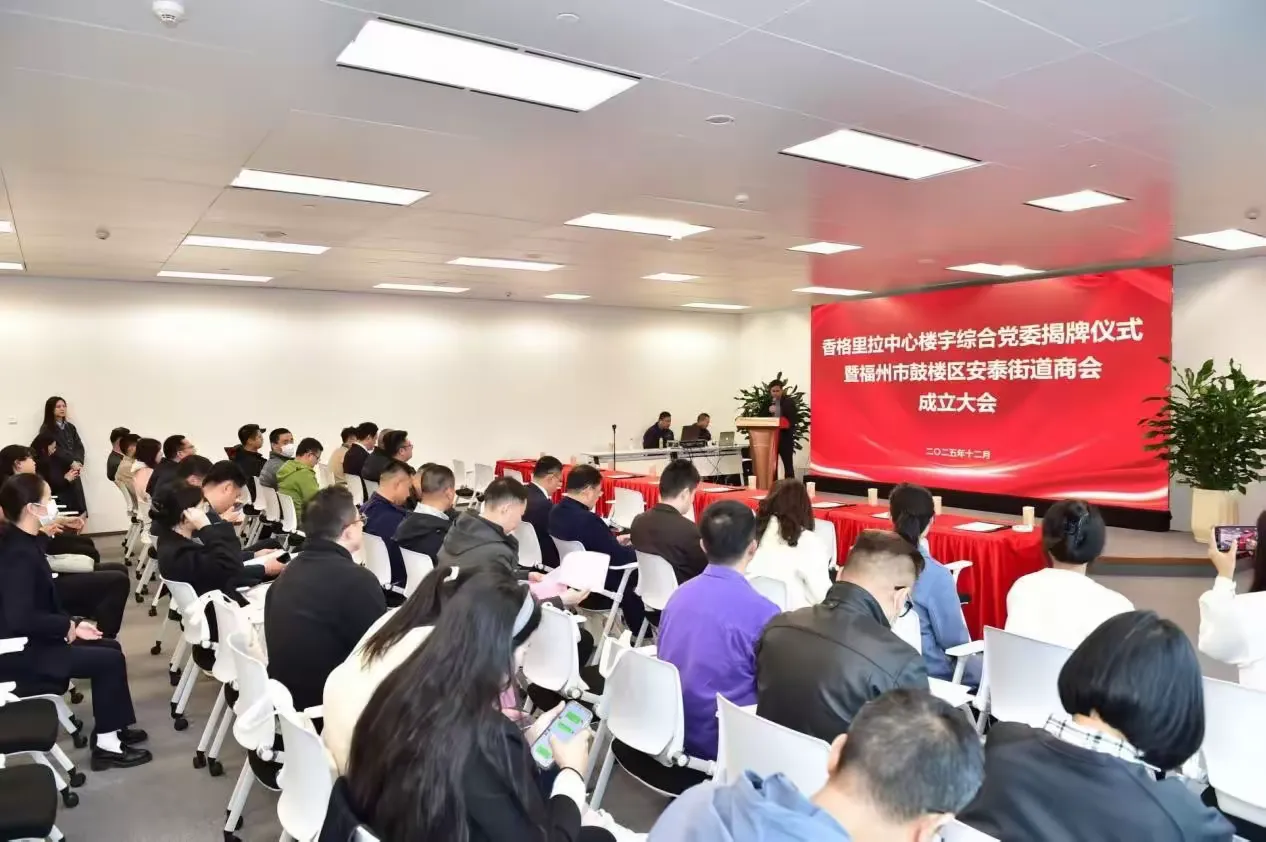 为深入实施新时代“堡垒工程”建设,强化党建引领,优化营商环境,凝聚楼宇企业与街道商界力量,形成区域内人才共育、活动共办、发展共享的“双轮驱动、组团发展”的新格局,12月12日,香格里拉中心楼宇综合党委揭牌仪式暨福州市鼓楼区安泰街道商会成立大会在香格里拉中心圆满举办。