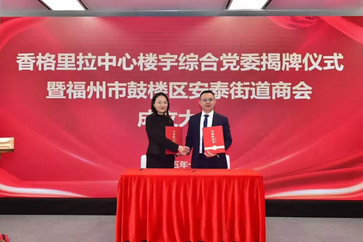 会上,香格里拉中心楼宇综合党委与安泰街道商会签订党建共建协议。未来,双方将通过共筑组织基础、共办党建活动、共促业务发展等方式,全面提升党建工作水平,以高质量党建引领商会和企业高质量发展,实现合作共赢。