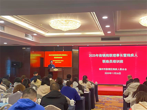 11月26日上午,鼓楼区残联举办2025年第二期街镇残联理事长暨残疾人联络员培训班。十街镇残联理事长、79名街镇(社区)残疾人联络员、五个残疾人专门协会主席及残联工作人员共计100余人参训。此次培训采取“理论宣讲与专业授课相衔接、政策解读与业务指导相融汇、案例剖析与互动交流相促进”的方式,旨在深入学习贯彻党的二十届四中全会精神,提升基层残联政治思想水平和组织服务能力,推动我区残疾人事业高质量发展。