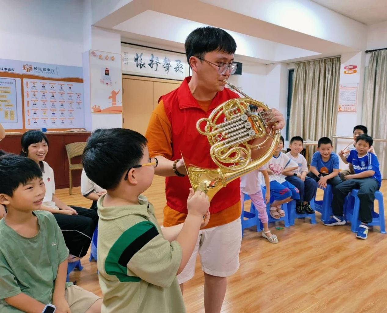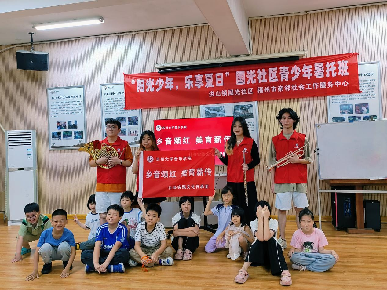 此次活动特别邀请了苏州大学音乐学院的志愿者老师们,他们以音乐为桥梁,为孩子们带来了一场关于《映山红》歌曲与西洋乐器学习的精彩课程,让悠扬的旋律成为这个夏天最动听的记忆。