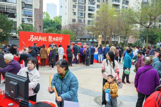 游戏嘉年华现场热闹欢腾,特色游园券成为居民们畅享活动精彩、开启欢乐之旅的“通行证”。数字体感游戏《新春击福鼓》前,早已围满了热情高涨的居民。借助先进的体感设备,参与者们如同身临其境般跟随欢快的节奏奋力击鼓,鼓声与笑声交织成新年乐章。《骏马引春风》《福马传佳话》《骏马拼鸿运》等游戏则兼顾动手与协作,居民们穿梭在各个游戏摊位之间,不同年龄段的居民们在这充满年味的游戏里寻找到了乐趣,邻里间的情谊也在这新春的暖阳中悄然绽放。