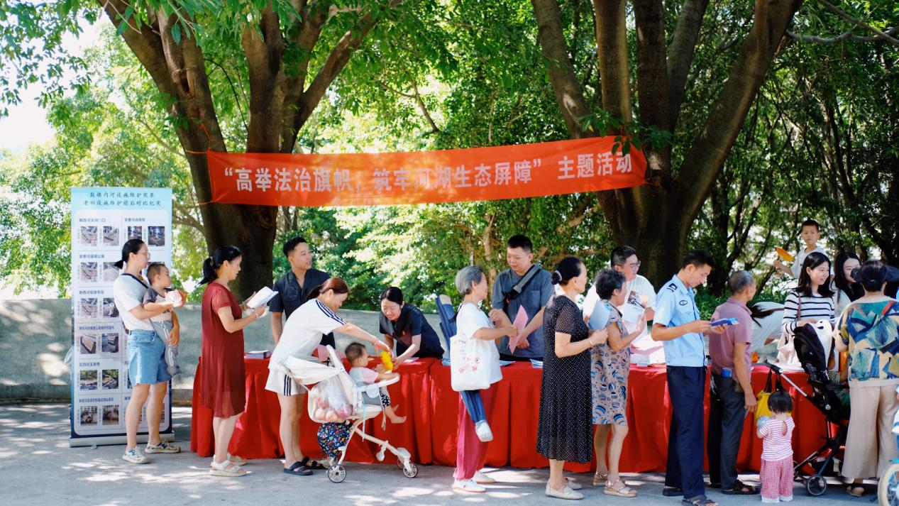 2025年8月19日上午,福州市鼓楼区河长制办公室联合鼓楼区法院、洪山镇在西河智慧体育公园开展“高举法治旗帜,筑牢河湖生态屏障”主题宣传活动。本次活动突破传统单向宣传模式,创新采用科普宣传与趣味互动相结合的方式,通过改革宣传载体与形式,让河湖保护知识更易被市民接受,旨在向市民普及河湖保护知识,增强全民护河爱河的法律意识与社会责任感。
