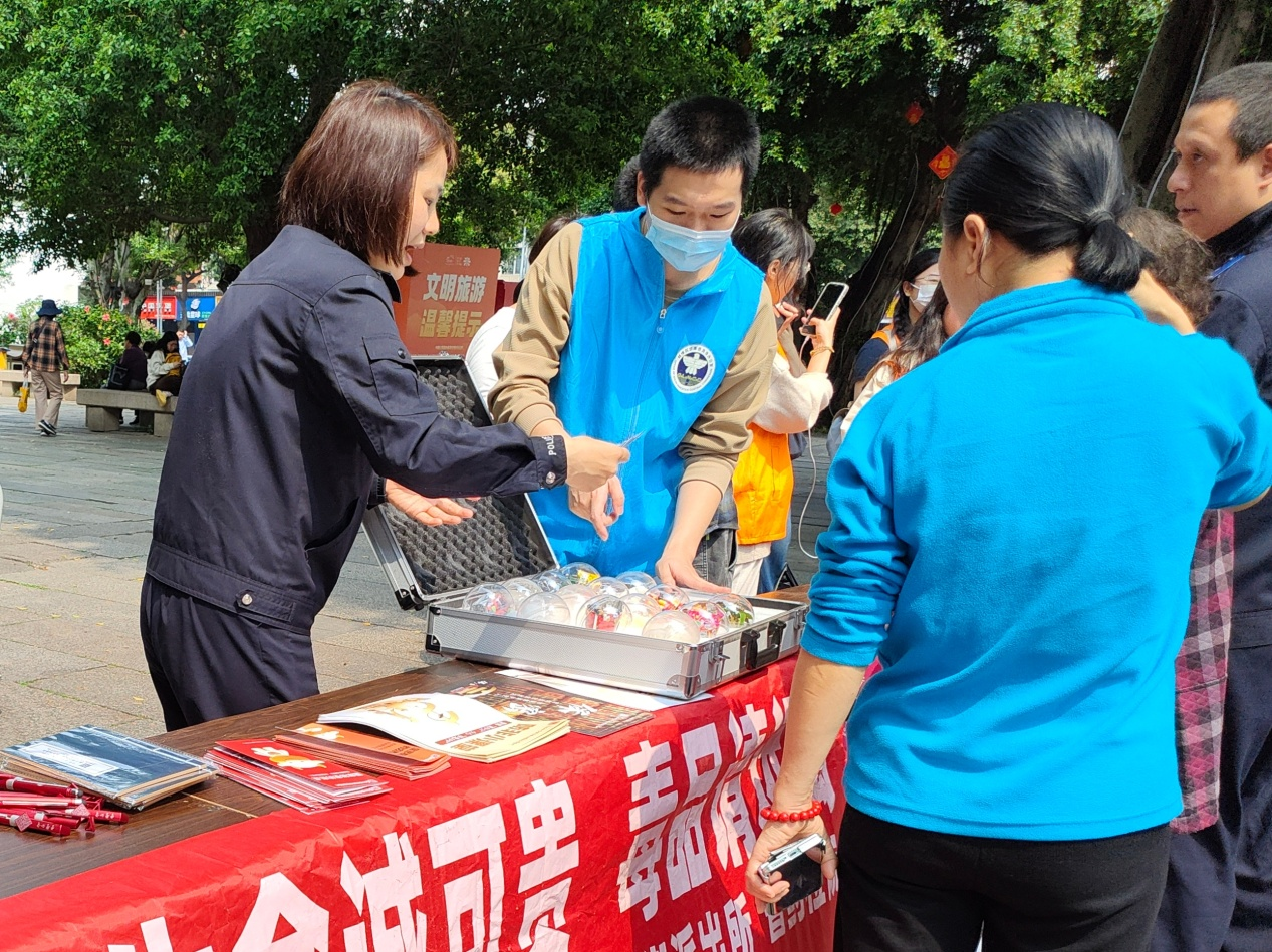 活动现场,民警和禁毒社工通过展示仿真毒品模型、发放禁毒宣传手册、设立咨询台等方式,向现场市民游客详细介绍了毒品的种类、特征、危害等知识,重点对新列管的“依托咪酯”、非列管成瘾性物质“笑气”等进行了讲解,呼吁大家积极参与新时代禁毒人民战争,举报涉毒违法犯罪线索,共筑禁毒人民防线。