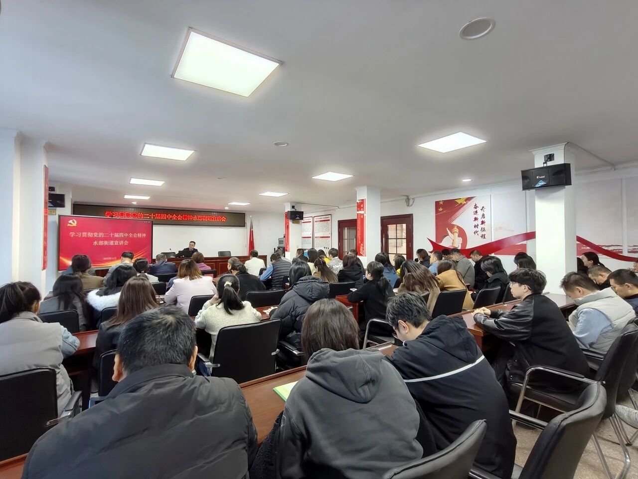 11月27日上午,水部街道开展学习贯彻党的二十届四中全会精神宣讲会。水部街道党工委书记林嵩作宣讲,街道全体干部、五社区书记及副书记、经合社代理理事长、城管中队队长等共约80人参加会议。