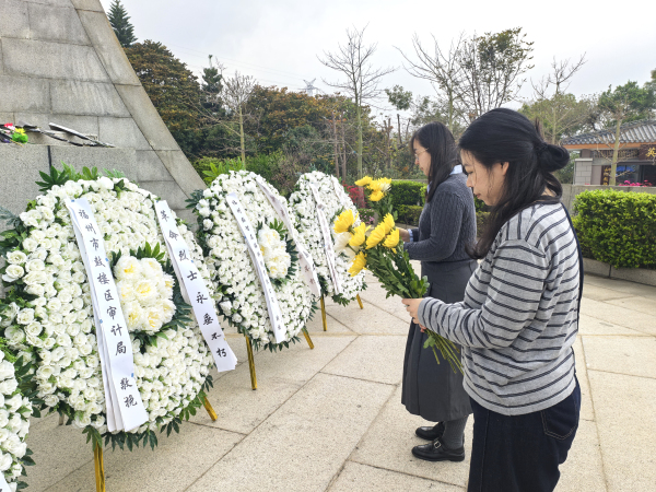 (图为福州市鼓楼区审计局在福州文林山革命陵园进行清明祭扫)