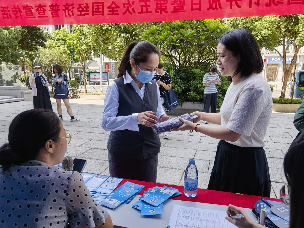 活动现场精心布置,工作人员通过设置咨询台、摆放展板和易拉宝,向过往市民和周边商户发放“五经普”宣传折页、现场科普统计知识等方式,就普查内容、统计法律法规以及开展“五经普”的重要意义等进行细致的宣传讲解。大洋百货的LED屏幕上也滚动播放着“五经普”宣传视频及海报。现场还设置了“有奖竞猜”抢答环节,吸引不少市民驻足。此次活动,进一步增进社会公众对经济普查的了解,提高“五经普”的知晓度、支持度和配合度,为即将开展的“五经普”正式入户登记工作营造了良好的社会氛围。