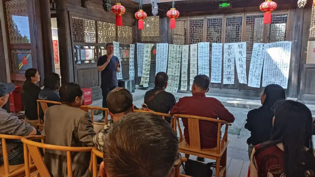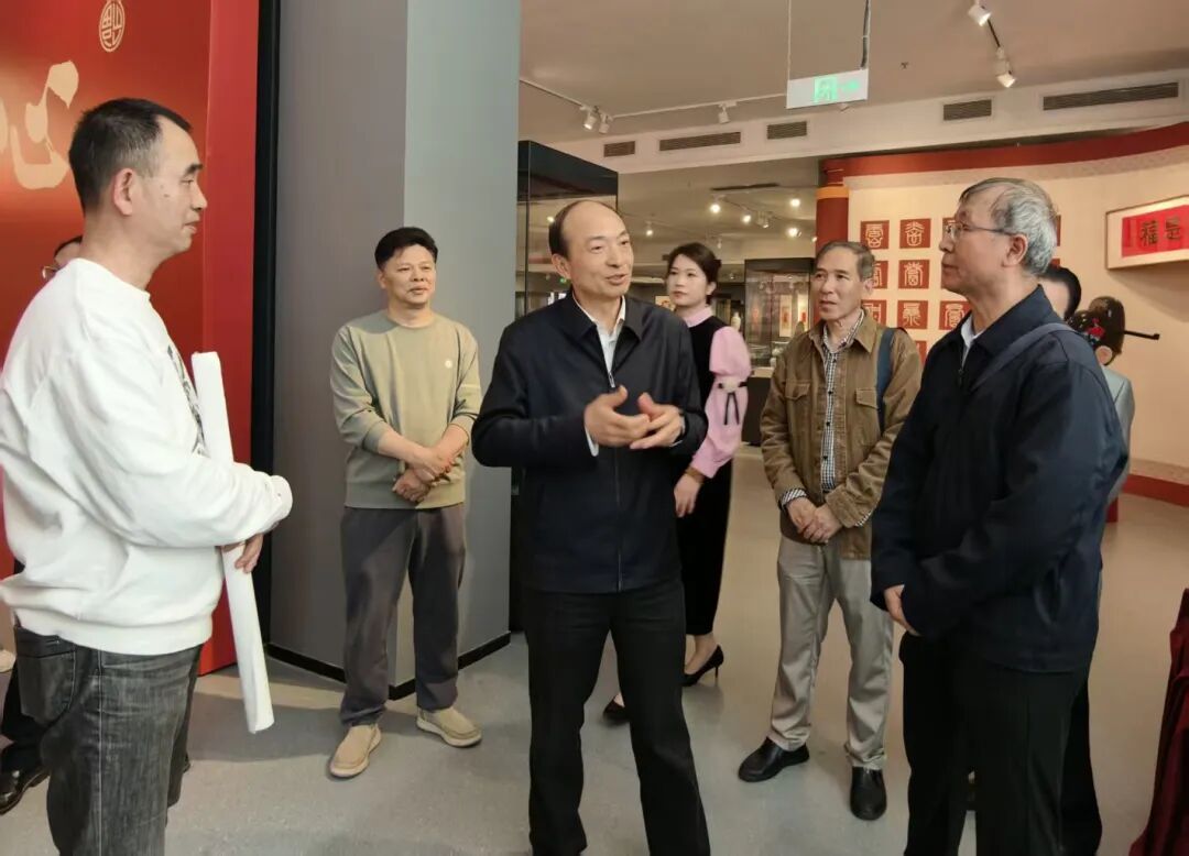 会后,大家还一同前往省图书馆,新老会员一起参观学习了由福建省文旅厅主办的“福韵匠心”主题书法艺术作品展,中国非物质文化遗产保护协会副会长、福文化研究专家陈吉先生现场为鼓楼区书协会员重点阐释了福文化的深厚内涵,让大家体悟到八闽大地“多元、深厚、交融”的福文化底蕴。