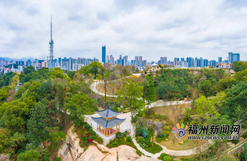 在冬日柔和的阳光中,站在邻宵台上极目远眺,城市画卷缓缓展开,飞檐高跷的三坊七巷层层叠叠、极具现代感的万宝苏商圈简约大气、庄重恢宏的福州地标五一广场一览无余……蔡襄诗词中对邻霄台及周边景色的描绘,穿过千年历史长河在现代重现。