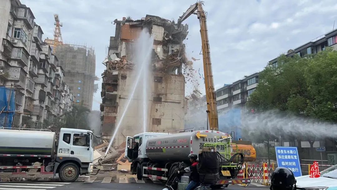 结合辖区实际,区房管局制定了《福州市鼓楼区房屋征收项目拆除工地扬尘污染防治工作方案》,建立起“开拆前备案管理和现场认定、拆除时扬尘管控和安全管理、拆除后裸土覆盖、净车出场、工地移交”的日常监管机制,并率先提出了“三湿两覆盖”的拆旧工作指导意见,即“拆除前楼体保湿,拆除中雾炮保湿,拆除后运渣保湿”和“拆除前楼体全覆盖,拆除后渣土全覆盖”,多措并举,让全方位的扬尘污染管控为鼓楼区房屋征收工作和居民群众的良好生活环境保驾护航。
