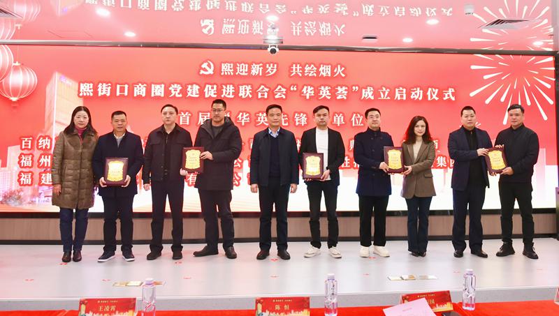 活动还为近年来积极配合镇党委、政府、属地社区在商圈党建、社会治理、经济发展等工作中,传递温度,展现锋芒,充分发挥党员先锋作用的10家“华英先锋”两新组织党组织授牌。