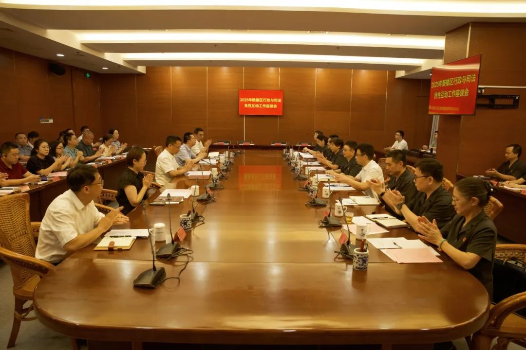 为强化府院联动机制效能,推进法治政府建设,8月22日上午,2025年鼓楼区行政与司法良性互动工作座谈会暨府院建立跨区域行政争议预防与化解签约仪式于区会议中心召开。鼓楼区委副书记、区长杨辉主持会议,区委常委、区政府党组成员陈斌,区政府党组成员、副区长余宁辛,鼓楼法院党组书记、院长池开通,鼓楼区直有关单位及各街镇等领导参加会议。福州中院党组成员、副院长张杰,福州铁路运输法院党组书记、院长李晖,福州市司法局党组副书记、副局长吴钢,晋安法院党组书记、院长黄勤武,以及上述单位有关领导受邀莅会指导。